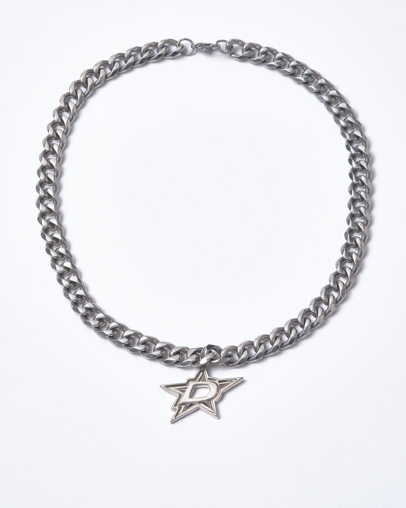 Hecha para destacar. Diseño grueso en acero inoxidable con eslabón tipo cubano y dije estrella con la “D” icónica de la marca. Fuerte, resistente y con presencia real en el cuello.