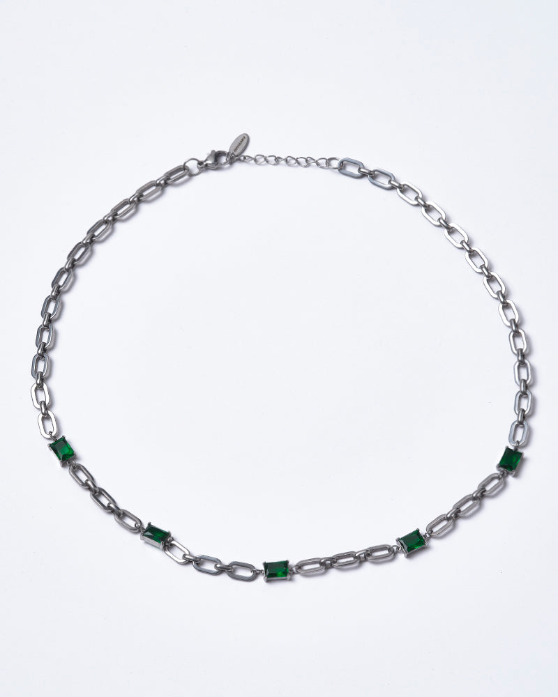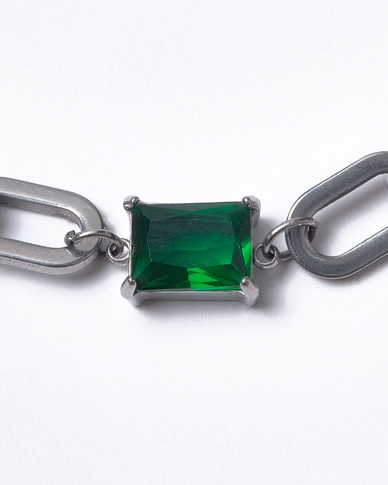 Diseñada en acero inoxidable con eslabones modernos y detalles en piedra verde rectangular que resaltan el contraste. Una pieza resistente, versátil y fácil de combinar para elevar cualquier outfit.