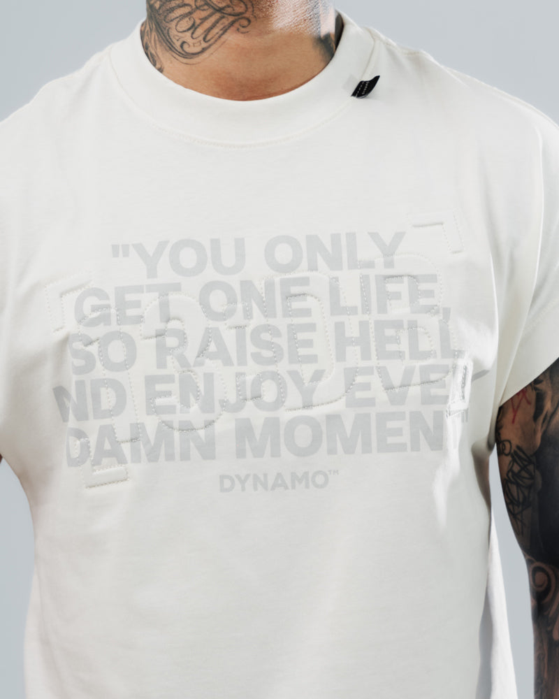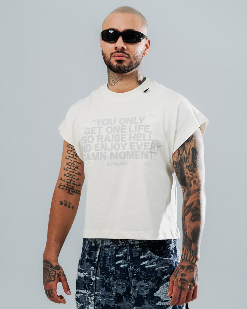 Camiseta Boxy Fit sin mangas en algodón 100% peruano (190-220 g), diseñada para destacar con un look rebelde y fresco. Corte amplio con frases impresas que transmiten actitud y estilo urbano. Ideal para quienes buscan libertad de movimiento sin perder el toque premium de Dynamo Brand.