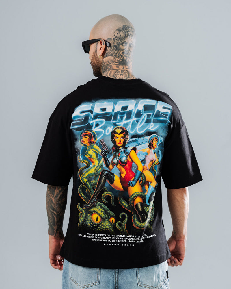 La Camiseta Oversize Space Battle de Dynamo está confeccionada en 100% algodón peruano (gramaje entre 190-220 g), ofreciendo durabilidad, comodidad y un fit relajado que define el streetwear auténtico. Su gráfico retro-futurista convierte esta prenda en un statement visual, ideal para quienes viven la cultura urbana y no temen destacar.