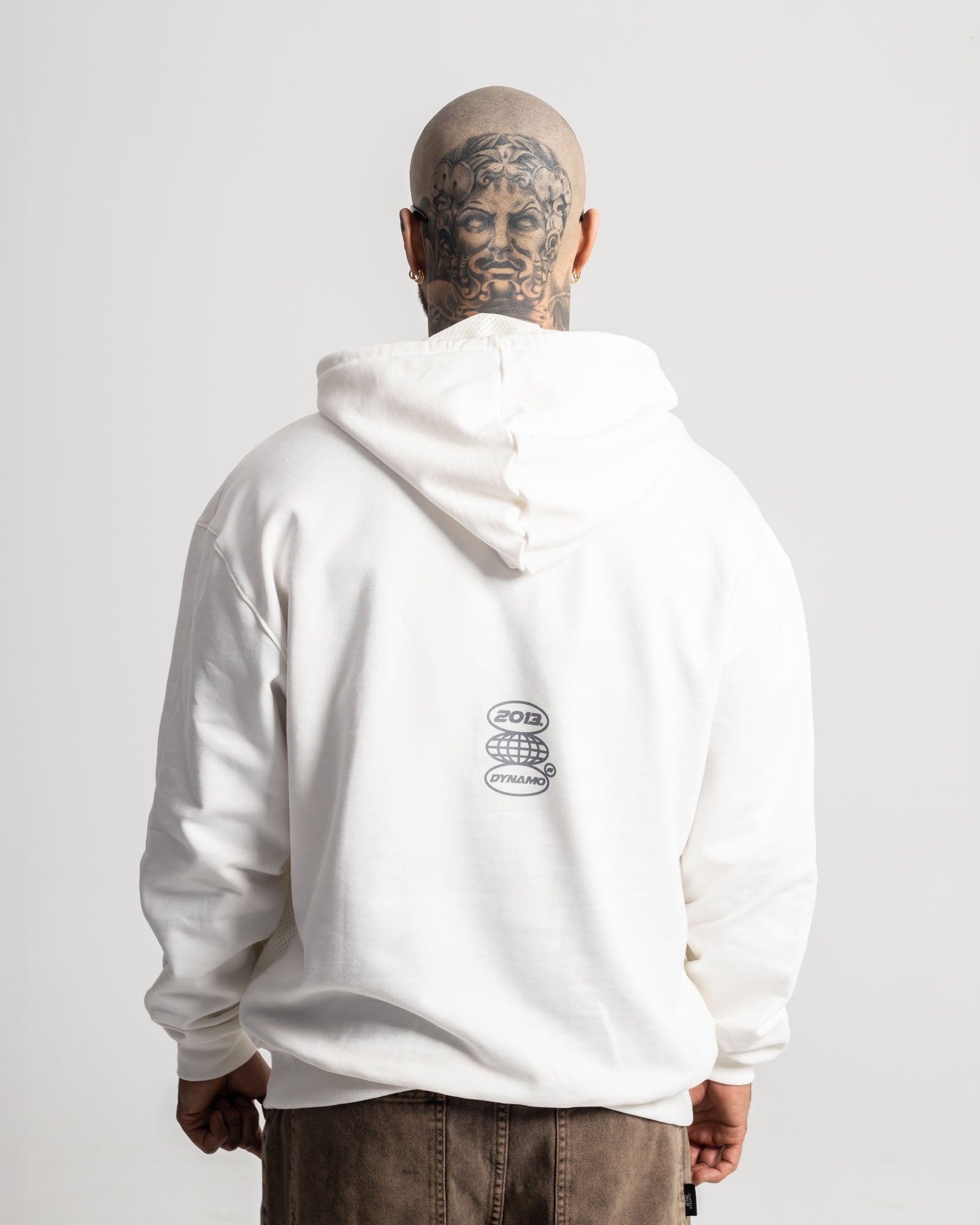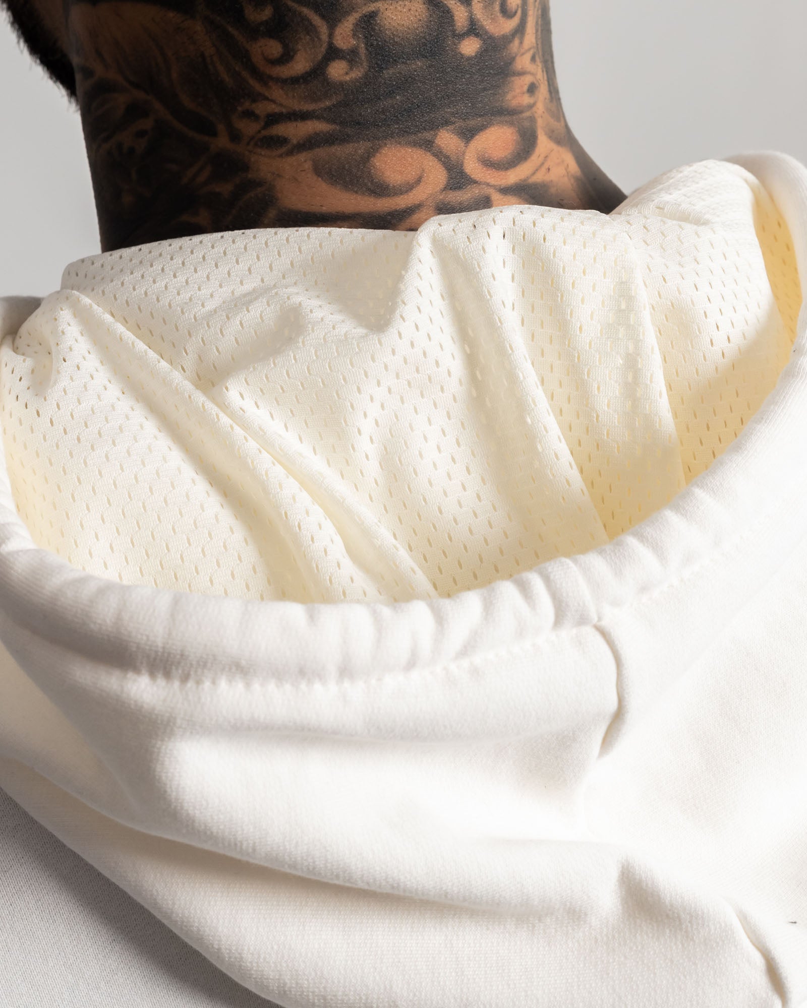 Hoodie Oversize. Confeccionado en base algodón de alto gramaje, incorpora panel frontal en mesh técnico que eleva la respirabilidad y el look street. Capucha estructurada con forro interno perforado, cordones gruesos con punteras metálicas y bolsillo canguro funcional. Un diseño limpio por fuera, pero cargado de carácter.