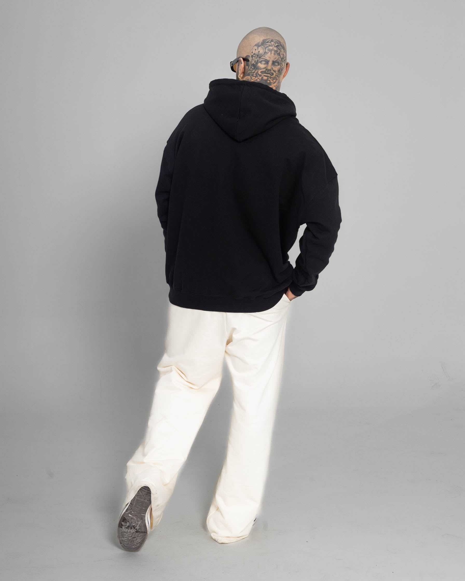 Hoodie Oversize negro de alto gramaje confeccionado en 100% algodón premium, diseñado para ofrecer estructura, comodidad y estilo urbano. Su silueta amplia, capucha ajustable y bolsillo canguro lo convierten en el básico esencial de Dynamo: minimalista, versátil y hecho para resistir el paso del tiempo.