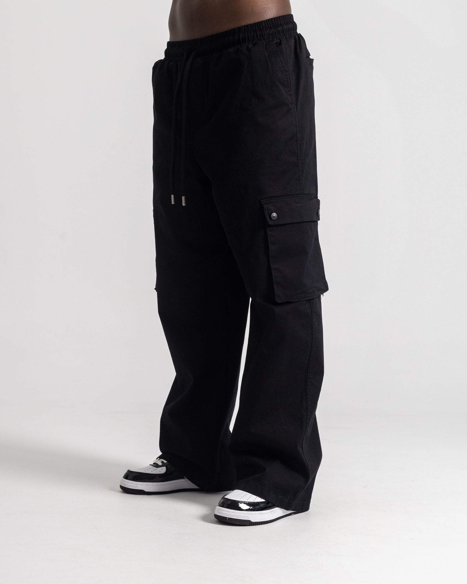 Jogger cargo de silueta relajada con esencia street. Confeccionado en base textil resistente y suave, cuenta con cintura elástica con cordón ajustable, bolsillos cargo laterales funcionales y caída amplia para máxima comodidad. Un básico pesado y versátil.