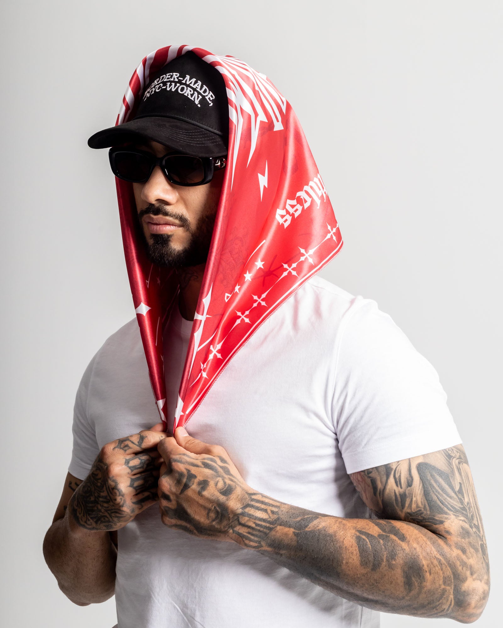 Pañoleta en satín con arte Ruthless en composición full print, acabados limpios, gráficos en alto contraste y bordes reforzados. Su textura suave y ligera la hace ideal para llevar al cuello, cabeza o como accesorio urbano.