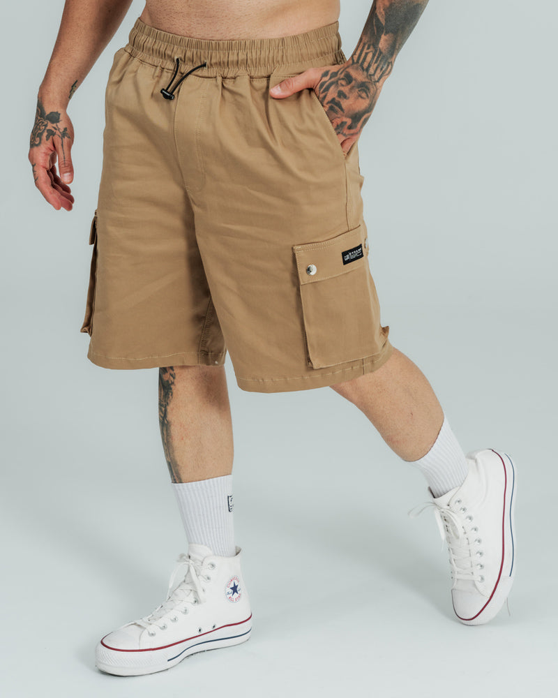 Total look Básico y actitud street. Camiseta básica oversize 300 g con fit relajado combinada con bermuda cargo esencial de caída recta y tono neutro. Un outfit funcional, pesado y versátil, diseñado para el día a día sin perder carácter.